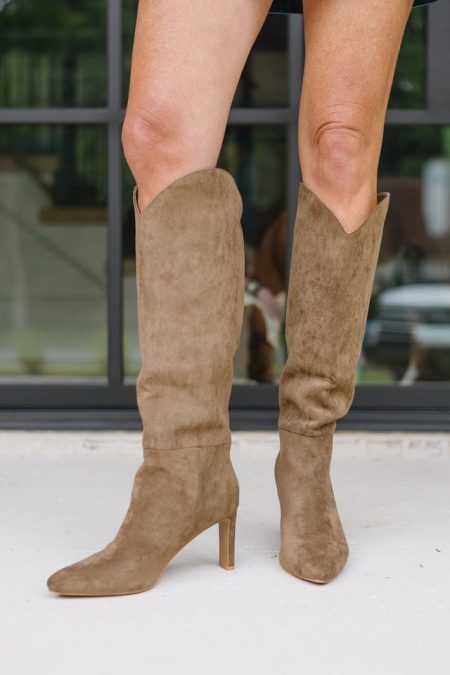 Details Microsuede bootsKnee highPointy toeSkinny heel Fits true to size