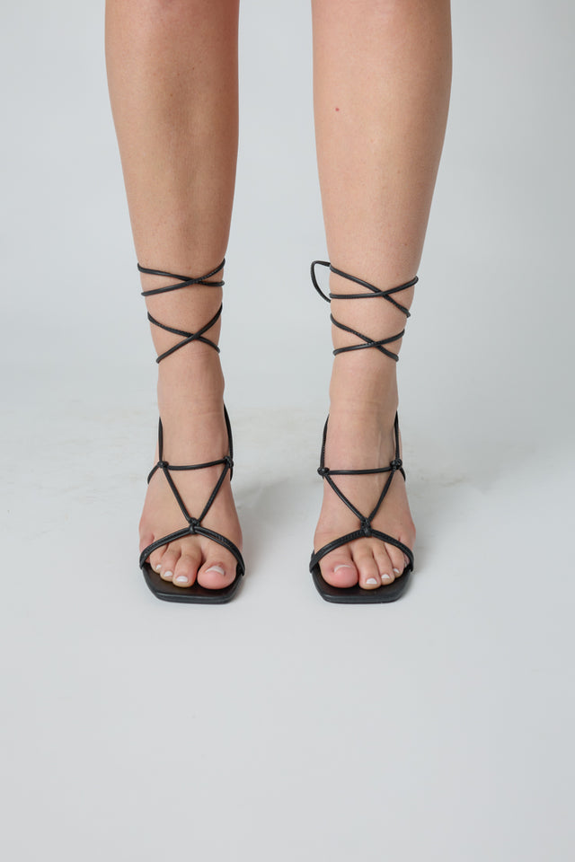 Details Strappy heelsSquare toeOpen backKnot detailHeel measures 3 inchesFits true to size
